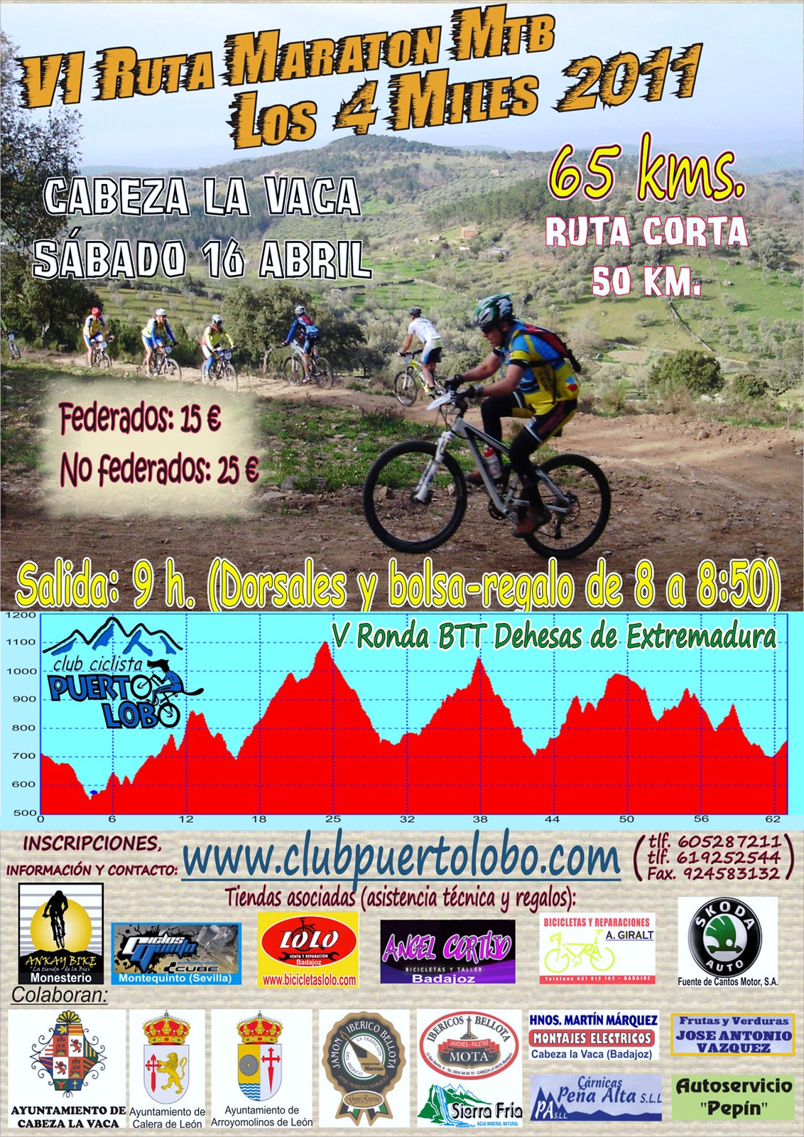 * Cartel VI Ruta Maraton MTB Los 4 Miles 2011, Cabeza la Vaca 16 de Abril
