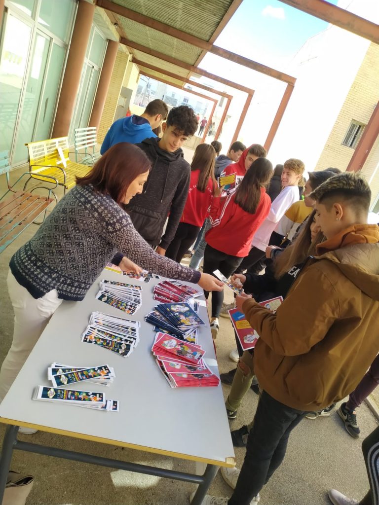 En la mañana de ayer y con motivo del DÍA NACIONAL SIN JUEGO DE AZAR, el Programa de Prevención de Conductas Adictivas de la Mancomunidad de Tentudía ponía en el I.E.S. “Alba Plata” de Fuente de Cantos, una mesa informativa con carteles y dípticos sobre la prevención en los juegos de azar.