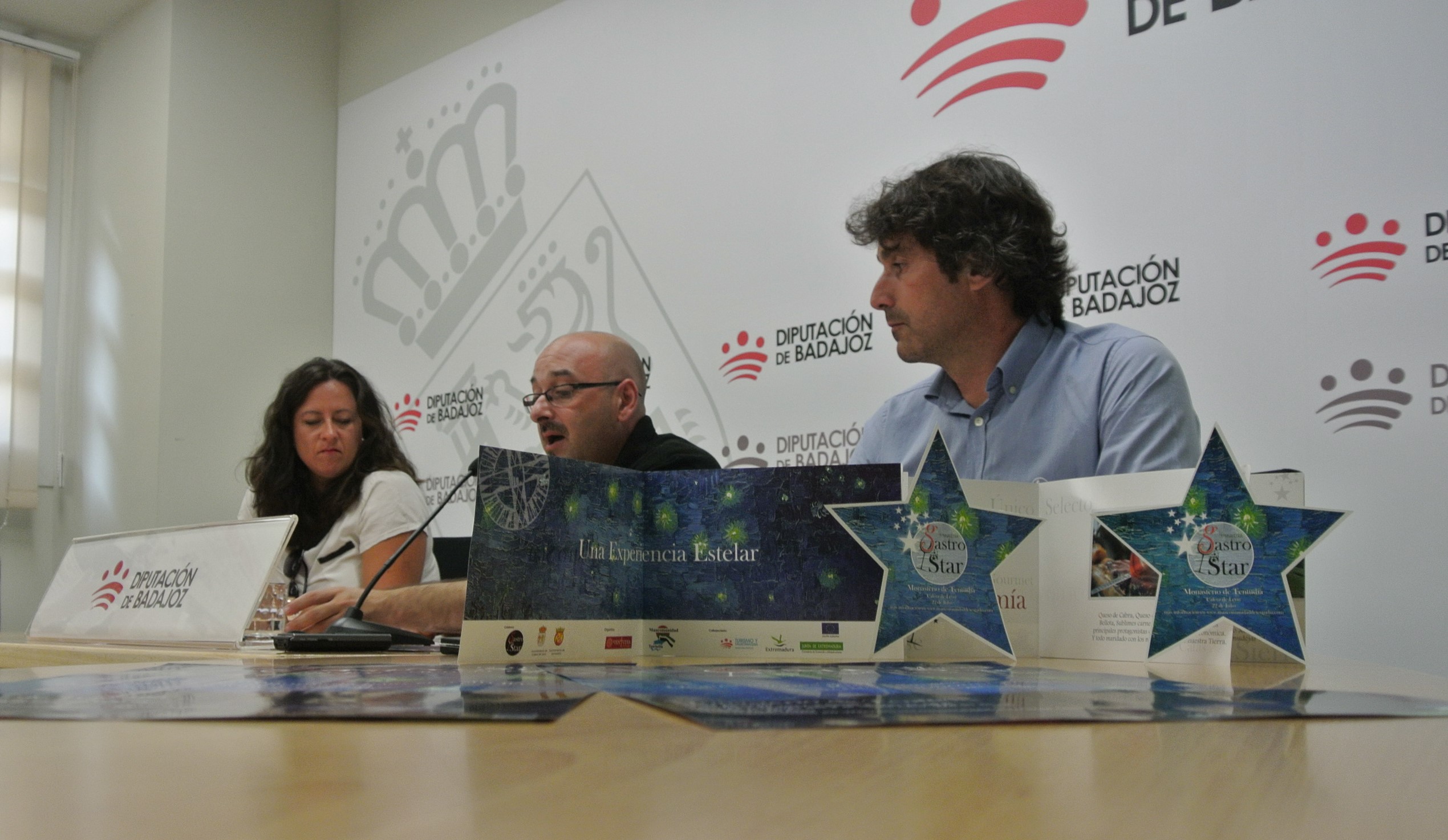 Aparicio estuvo acompañado en la presentación de la muestra Gastro Star por Francisco Farrona, diputado delegado de Desarrollo Sostenible, y Mercedes Díaz, presidenta de la Mancomunidad de Tentudía.