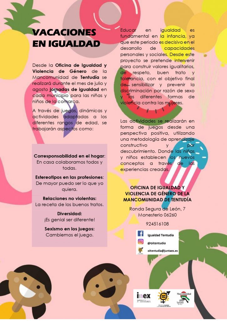 Este verano la Oficina de Igualdad y Violencia de Género de la Mancomunidad de Tentudía realizará durante los meses de julio y agosto jornadas de igualdad en cada municipio para las niñas y niños de la comarca.